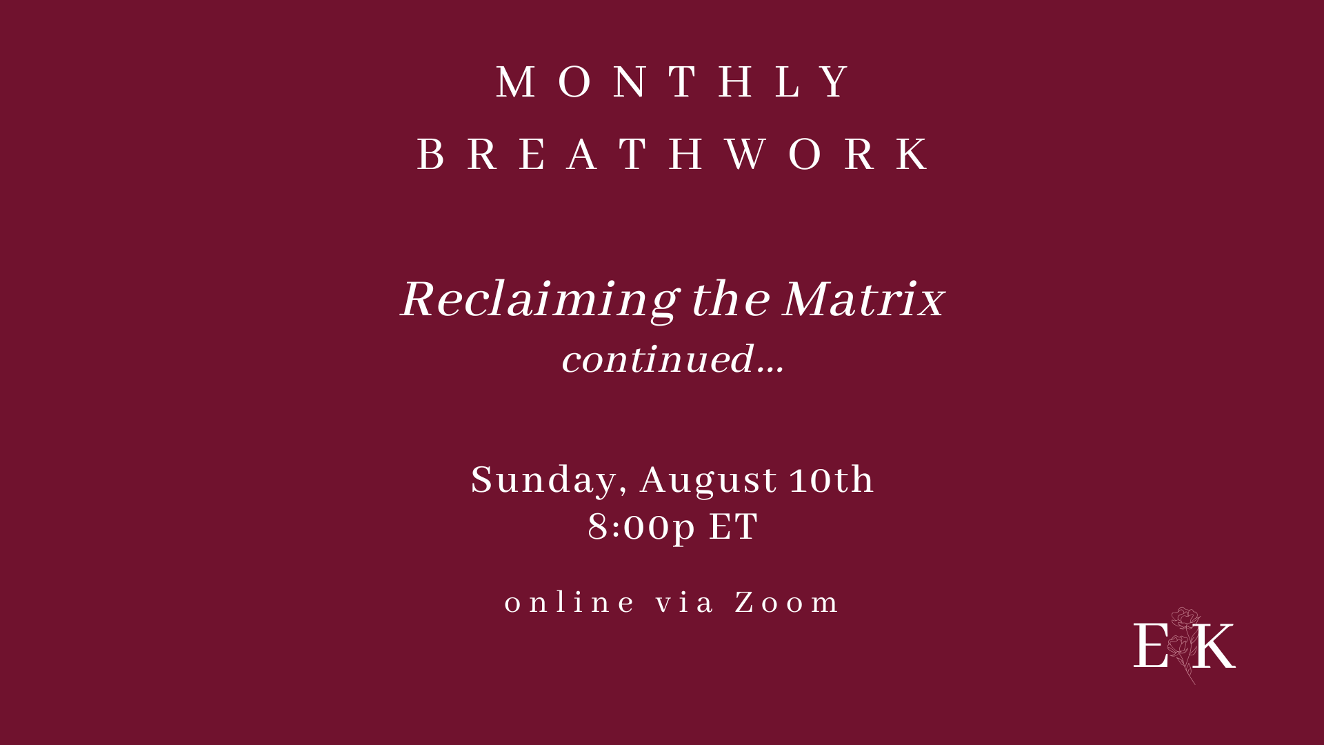 This month’s online breathwork class continues with the focus on Reclaiming the Matrix through building our life force and vibrancy.